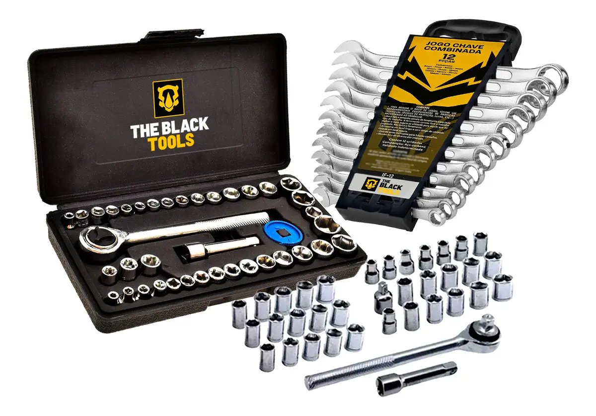 Kit Jogo De Ferramentas 40 Peças Com Soquetes E Kit Chave Combinada 6 A 22mm 12 Peças The Black Tools