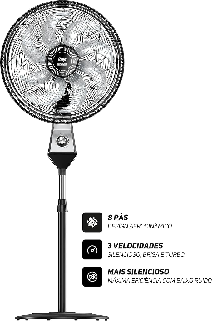WAP Ventilador de Coluna 50cm FLOW TURBO, com Tecnologia Silenciosa e Econômica, 8 Pás e 3 Velocidades, 180W 127V