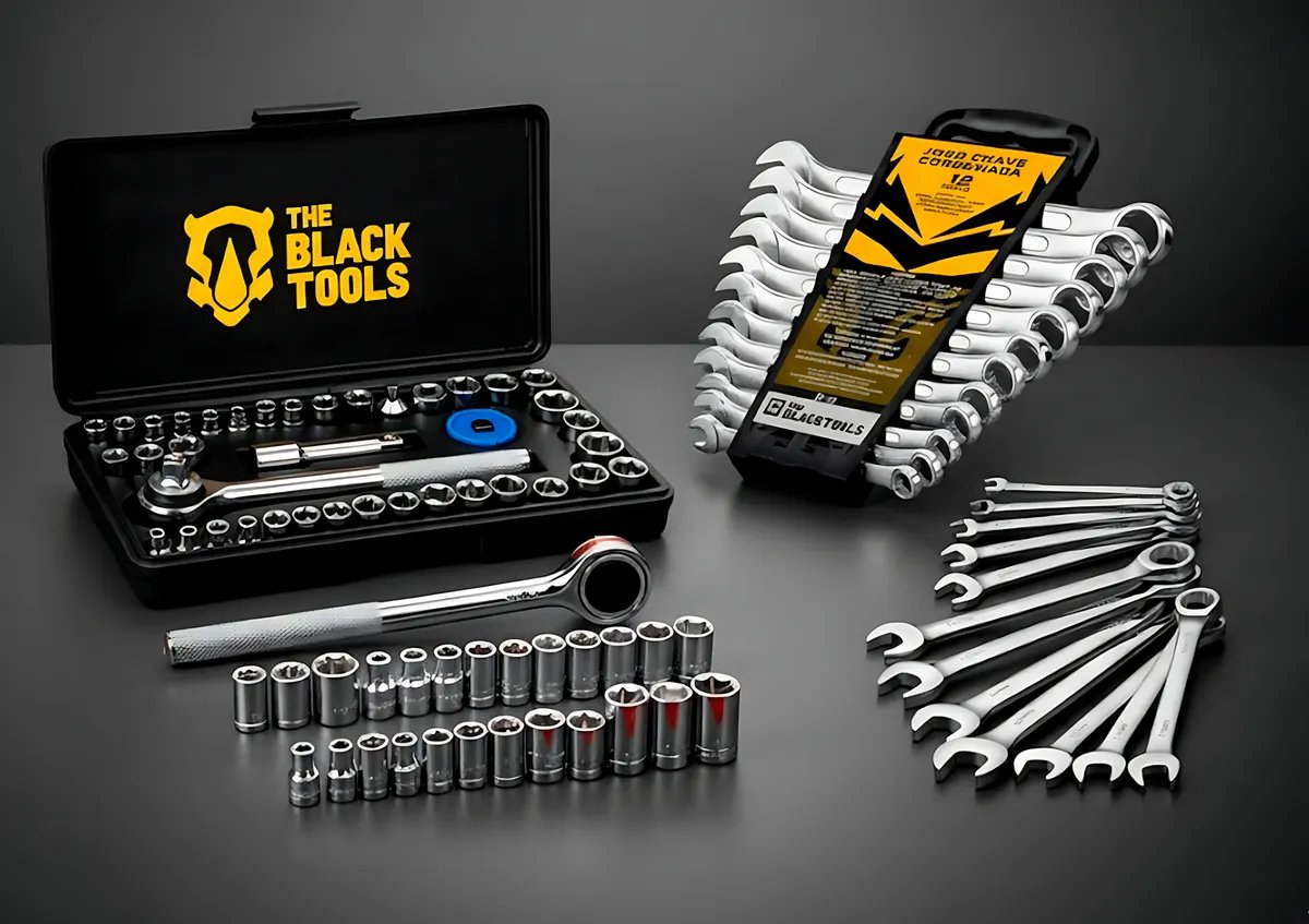Jogo Ferramentas 50 Peças Soquetes Catraca Chave Combinada Preto