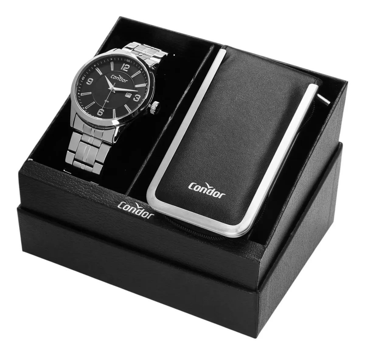 Kit Relógio Condor Masculino Dia A Dia Prata
