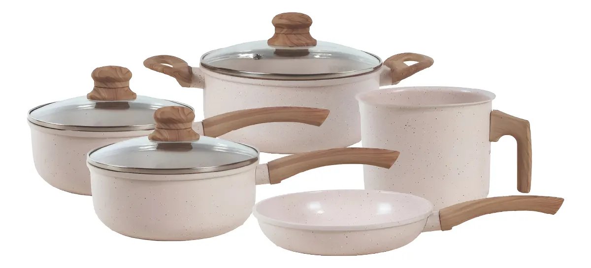 Jogo De Panelas Cerâmico Triplo Indução Tuut Ecoglid 5 Peças Cor Baunilha