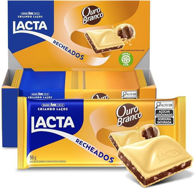 Chocolate Lacta Recheado Ouro Branco Caixa Com 17 Unidades De 98g