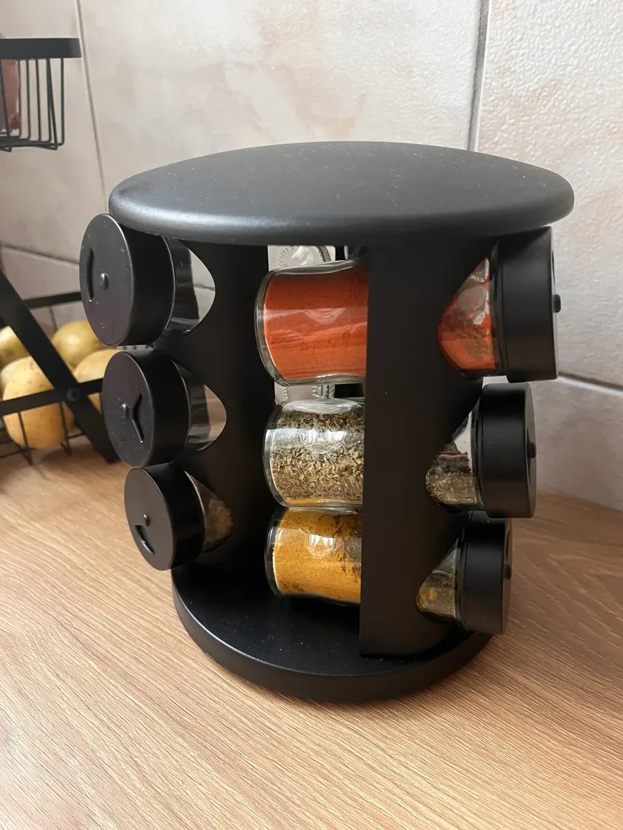 Porta Temperos Giratório 9 Potes Vidro Preto Mesa Cozinha Organizador