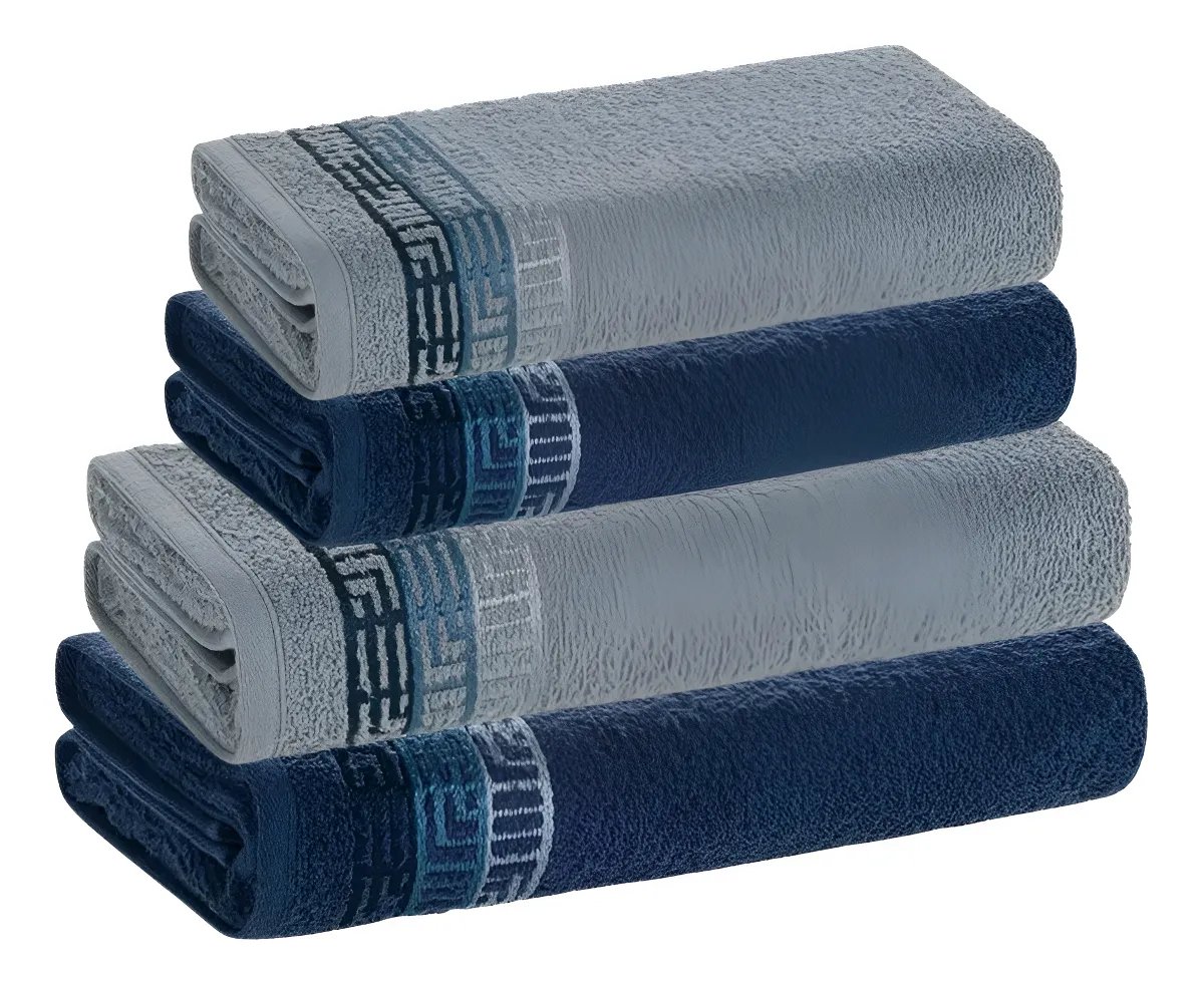 Jogo De Toalhas 4 Pçs Fio Cardado 100% Algodão Bosco Karsten Azul Serena/ Azul Naval Bosco