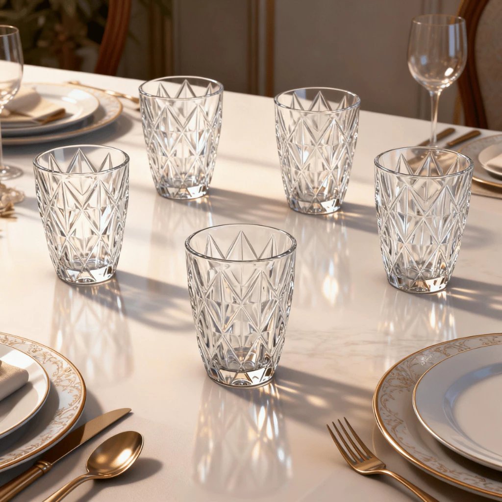 Jogo 6 Copos Diamond 300ml Vidro Grosso Diamante Luxo Transparente Resistente Moderno Elegante
