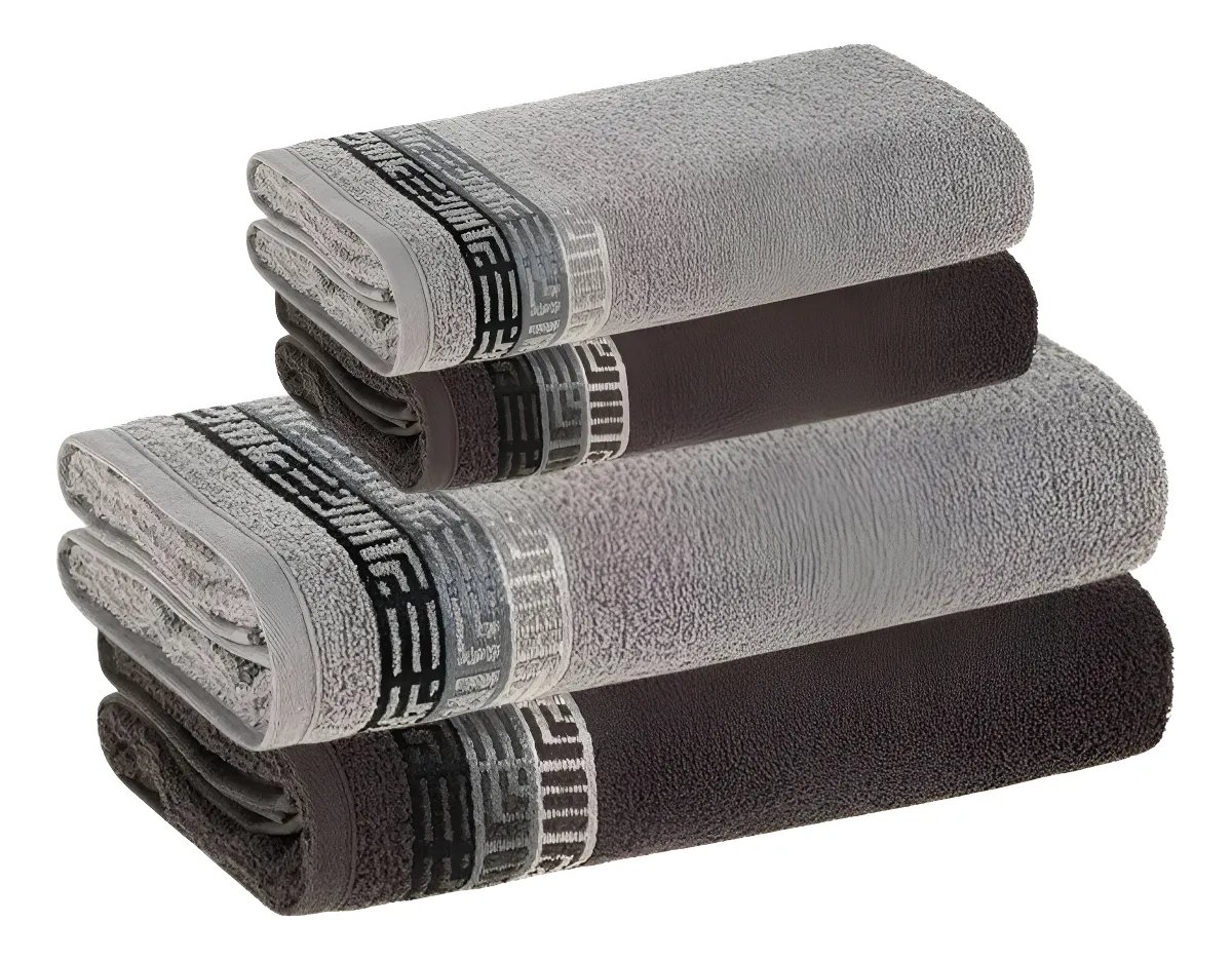 Jogo De Toalhas 4 Pçs Fio Cardado 100% Algodão Bosco Karsten Cinza Bosco