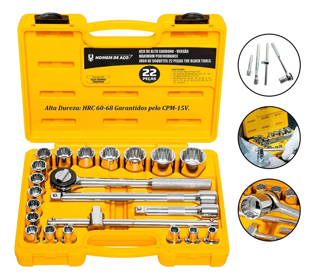 Kit22 Soquete Pro Manual Chave Catraca Reversível 8-32mm Amarelo