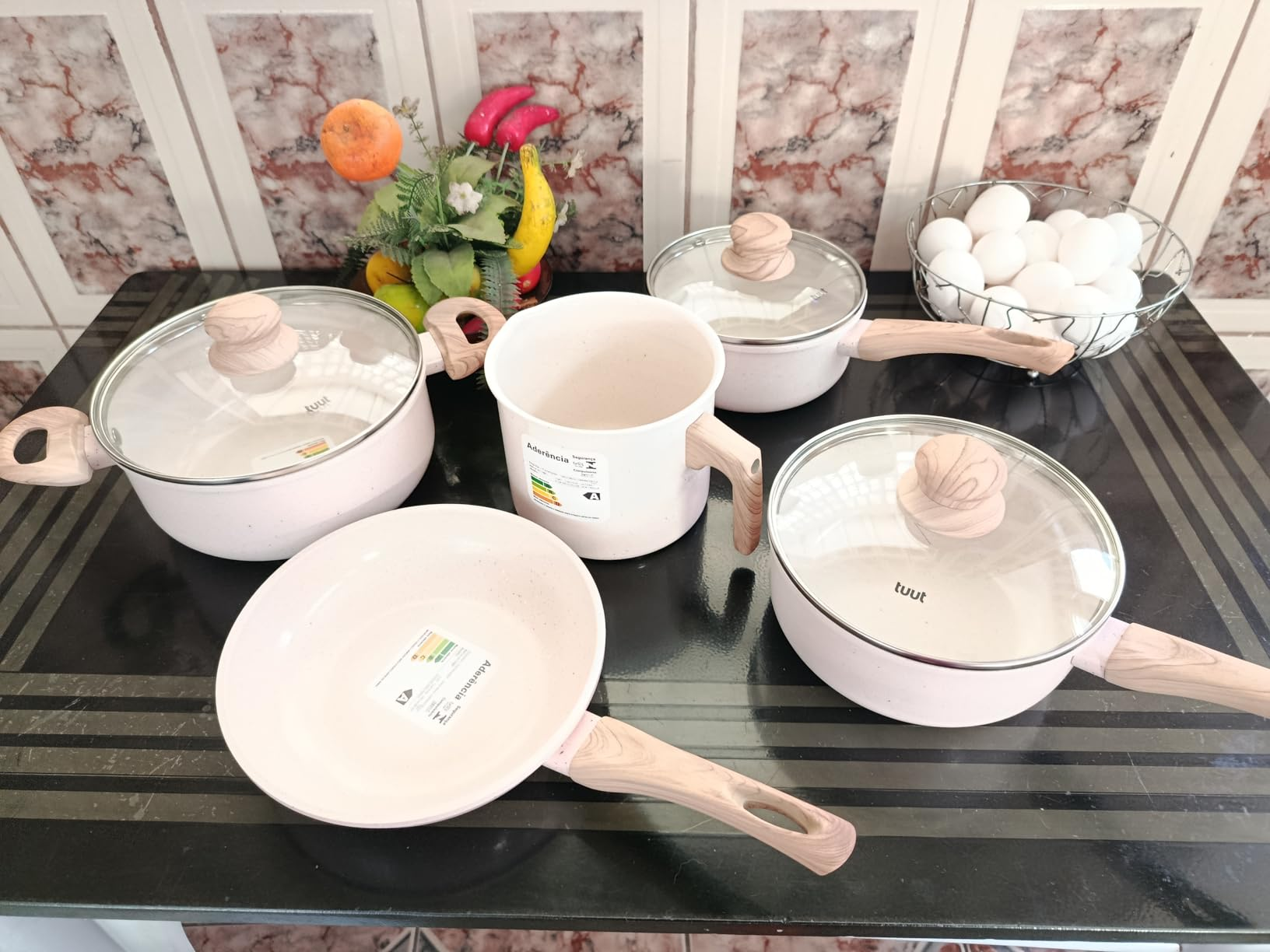 Jogo De Panelas Cerâmica Antiaderente Indução 5 Peças Ecoglid Sólar Branca