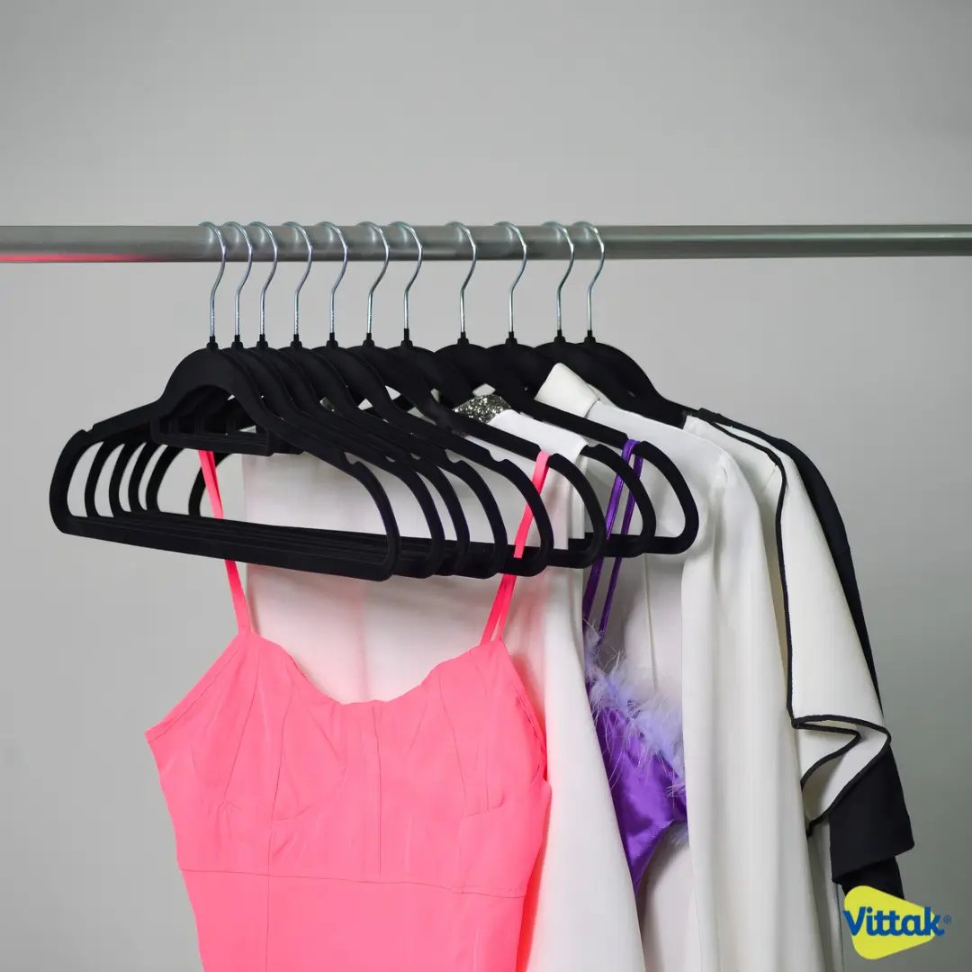 Vittak Kit 30 Cabides Veludo De Roupa Antideslizante Slim Adulto Cor Preto