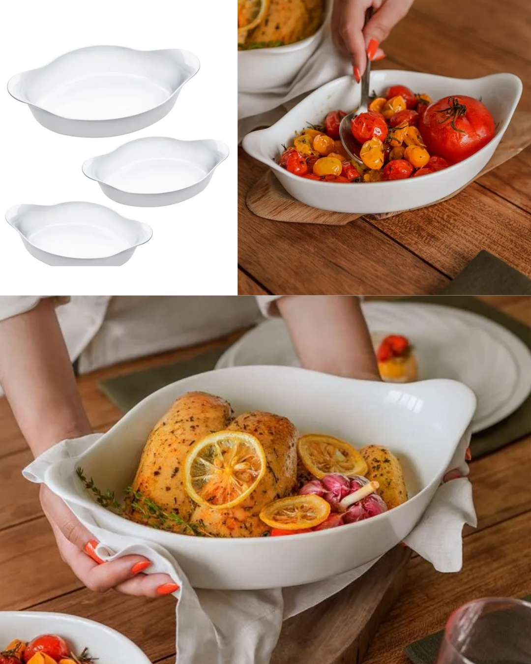 Marinex conjunto de assadeiras oval opaline 3 peças branco