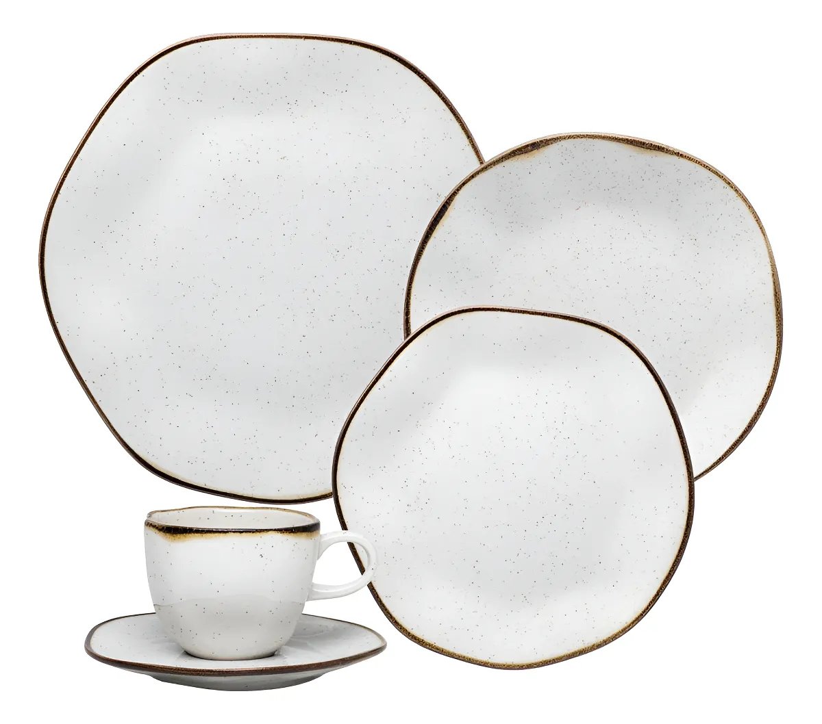 Aparelho de Jantar e Chá Ryo Maresia 20 Peças Branco e Marrom Oxford