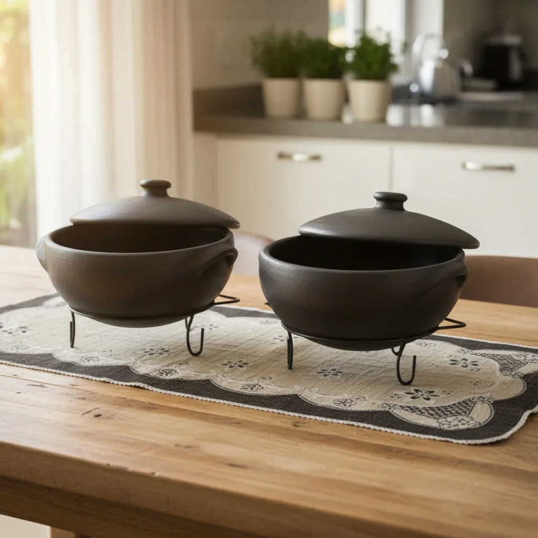 Kit Panelas De Barro Capixaba 3 E 5 Litros + Suporte