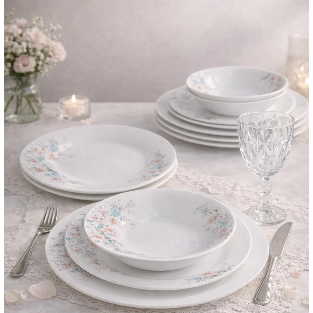 Aparelho Jantar Taça Diamond 16 Peças Estampado Luxo Pratos
