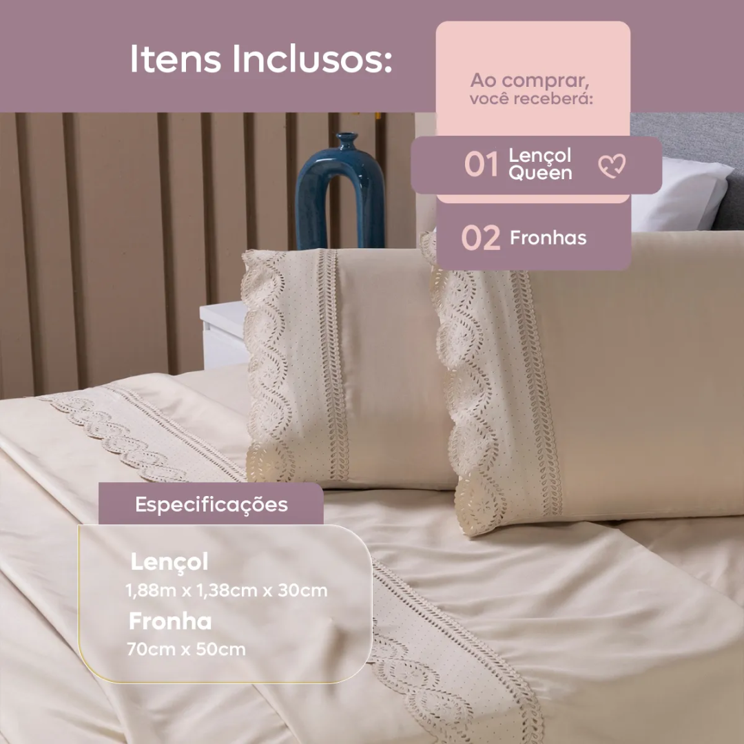 Jogo Lençol Casal Queen 400 Fios Bordado 3 Pçs Micropercal