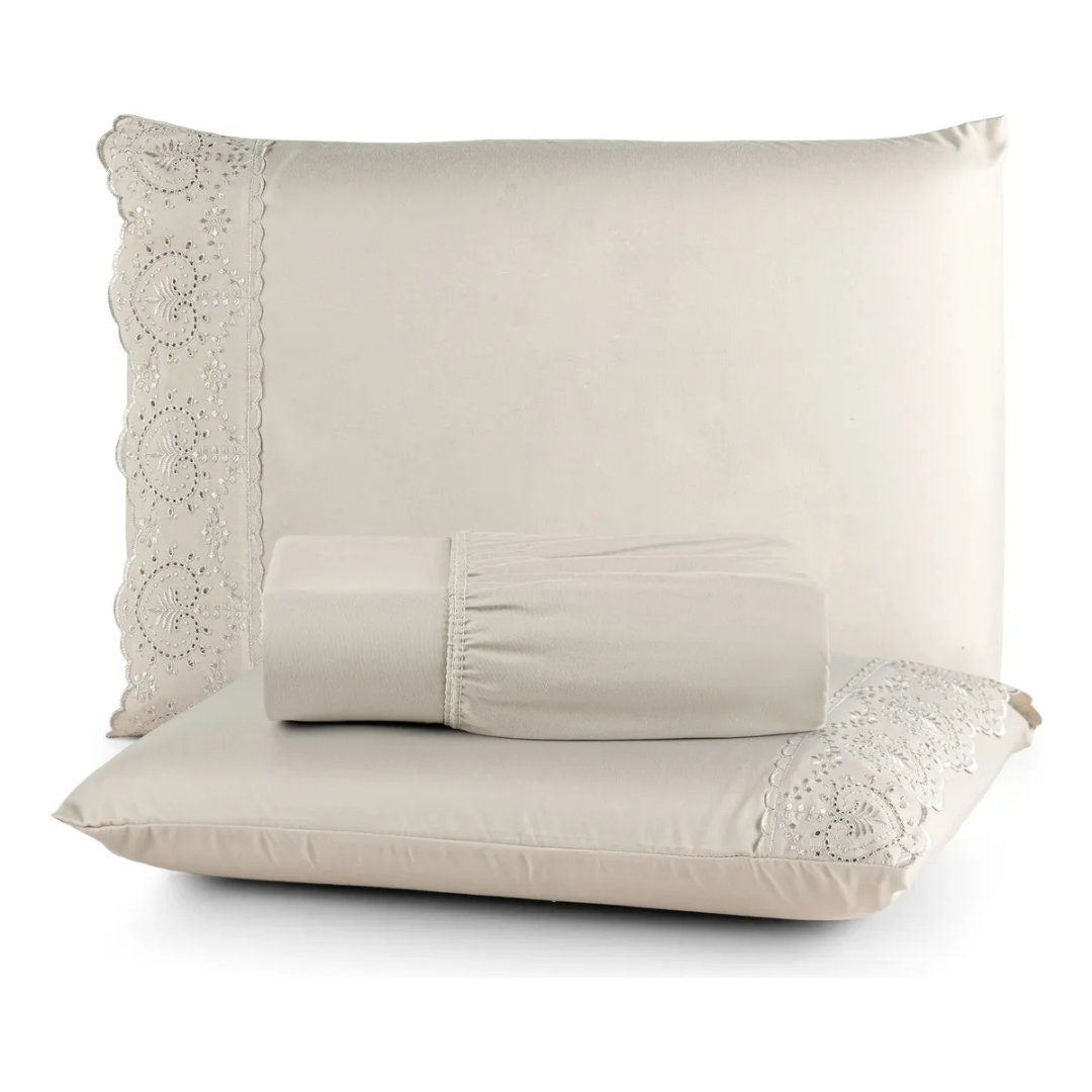 Jogo De Lençol Com Lese Queen 400 Fios 3 Peças Cama Toque Macio Luxo Cor Caqui Texfine