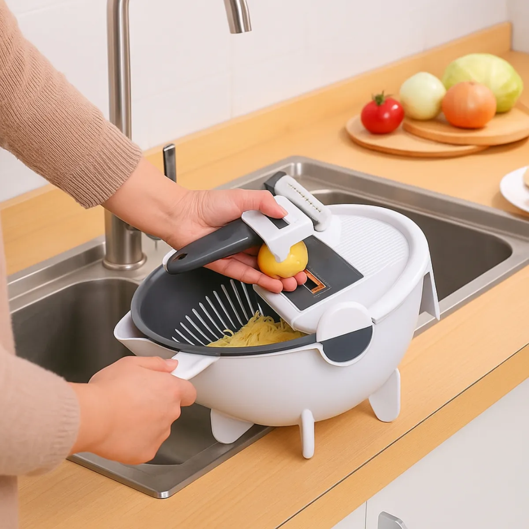 Cortador De Legumes 9 Em 1 Bacia Escorredor Ralador Fatiador