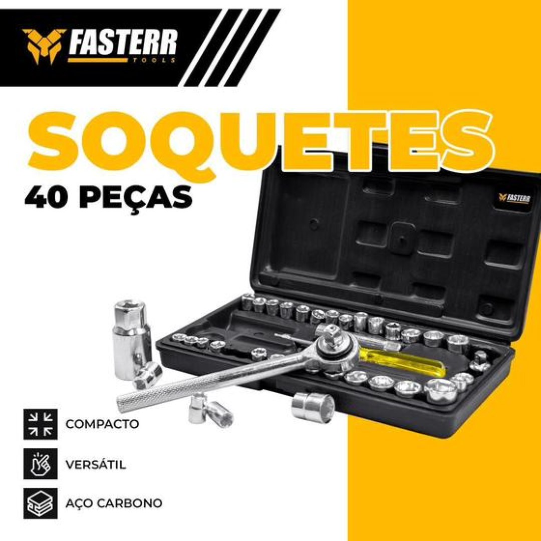 Kit Chaves Jogo Catraca Reversível Soquetes 40 Peças Maleta Fasterr