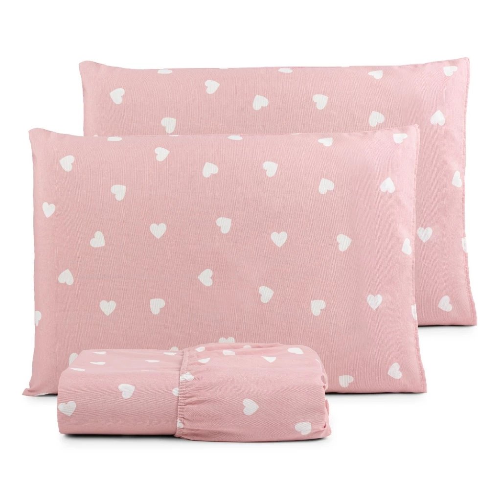 Jogo Lençol 3 Peças Coração Estampado Percal 180 Fios