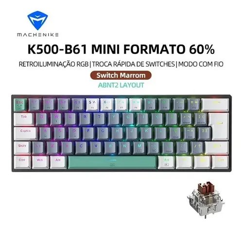 Teclado Gamer Mecanico Machenike K500-b61 60% Abnt2 Rgb Cinza Português Brasil