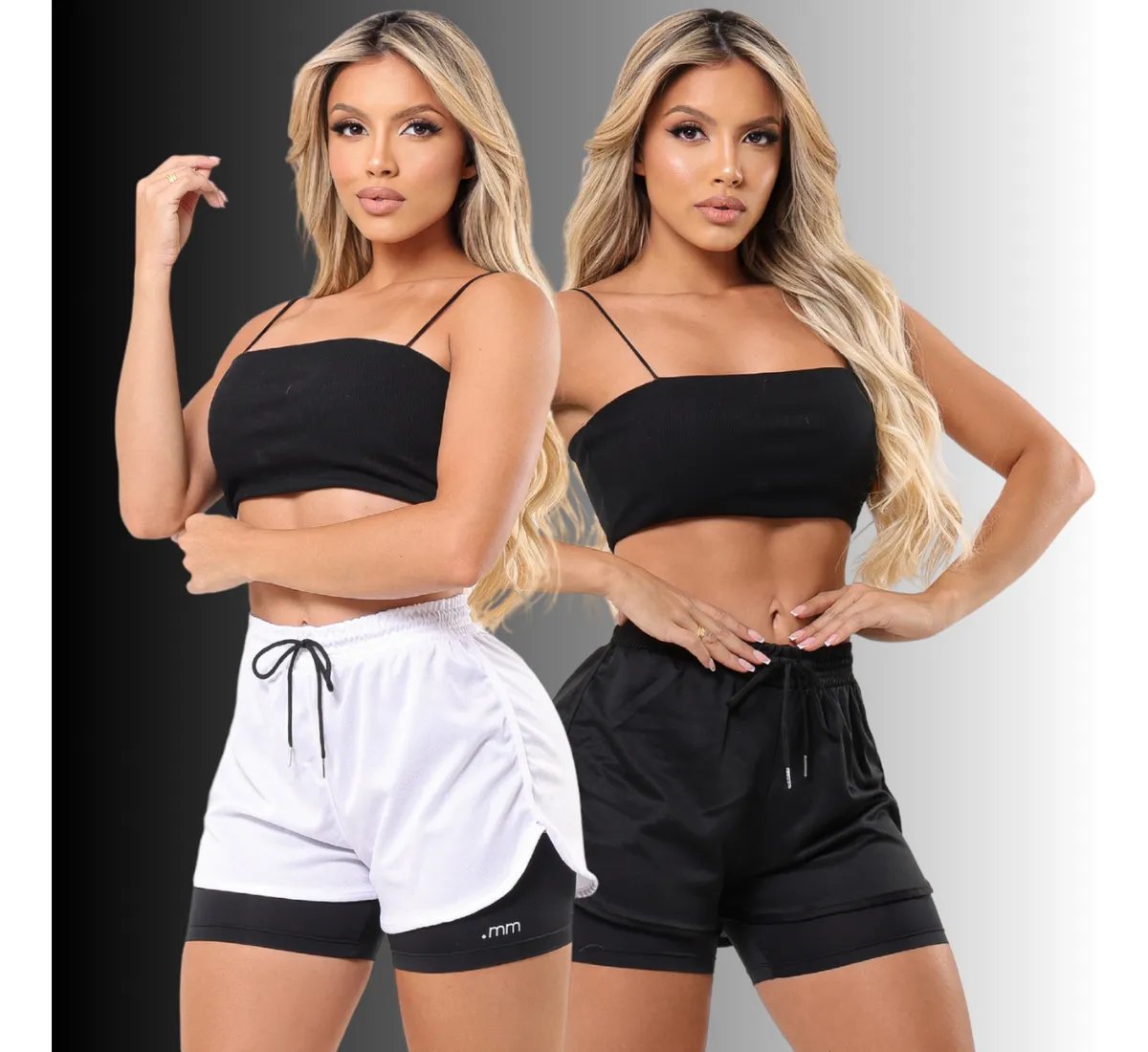 Kit 2 Short Duplo Compreensão Fitness Bermuda Feminino