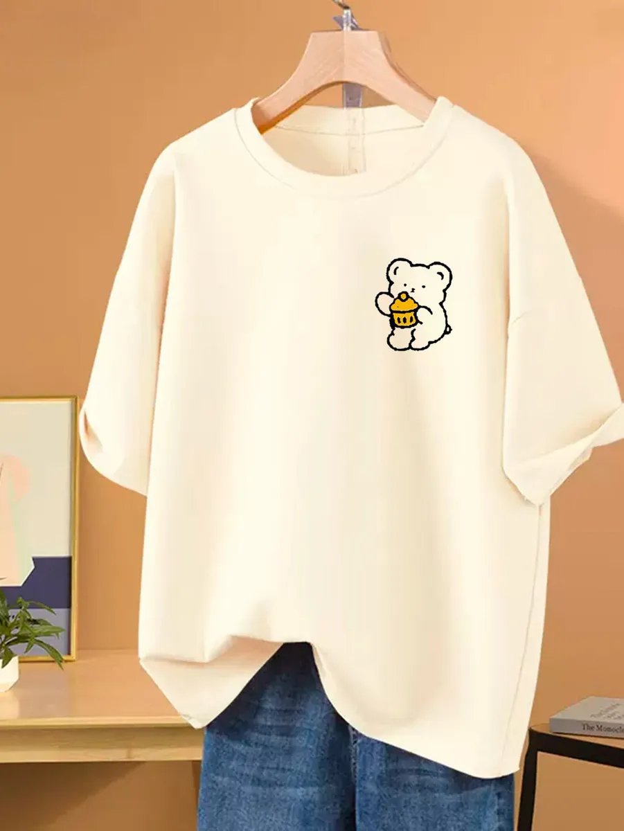 Camiseta Feminina Estampada Urso Cupcake Animado Algodão