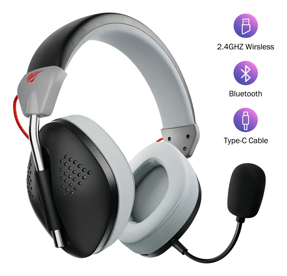 Headset Gamer Havit Gamenote Fuxi H4 Bt 2.4hz Type-c Preto/Cinza