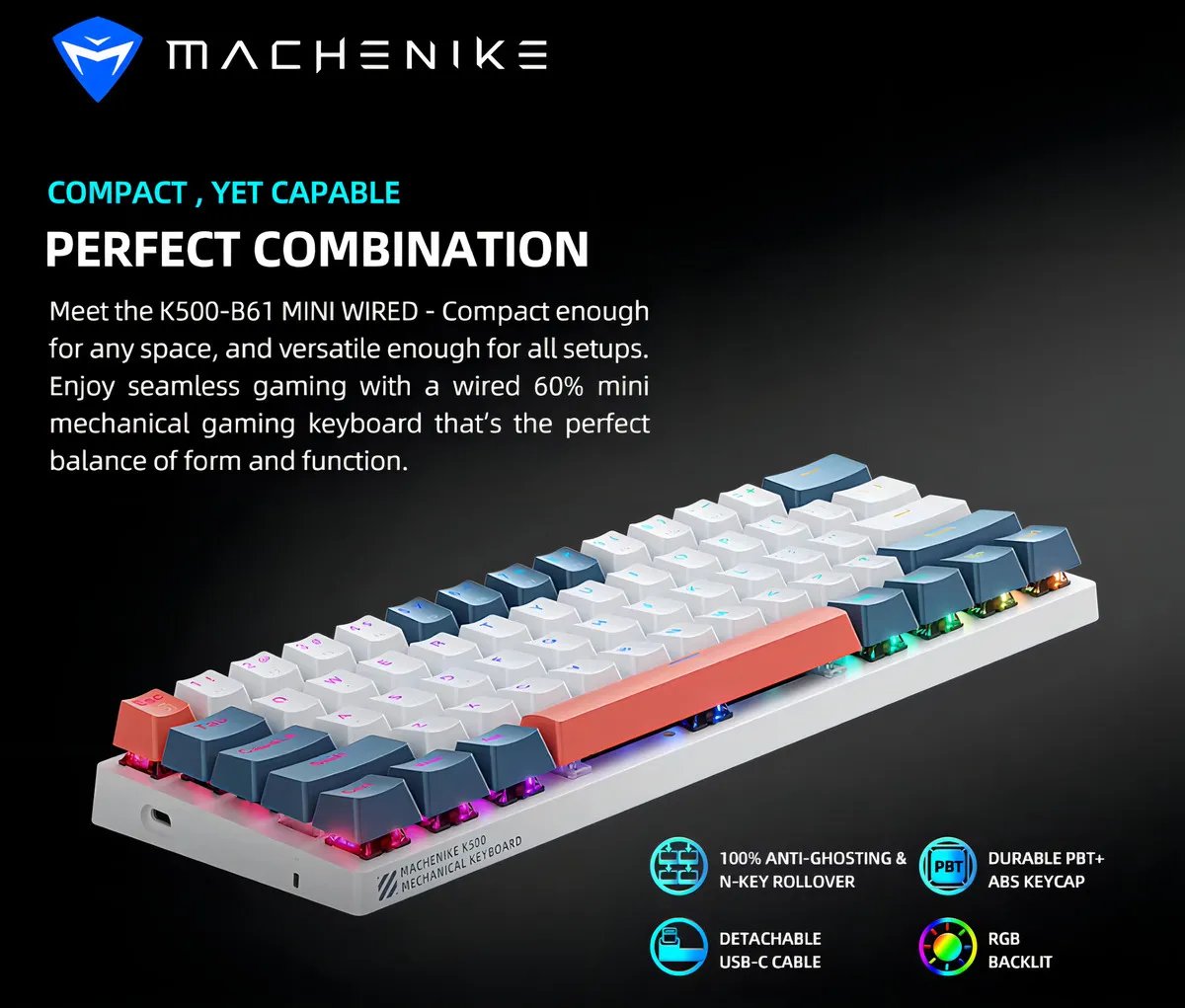 Teclado Mecânico Machenike K500-B61 Com Fio Red Switch RGB 60%