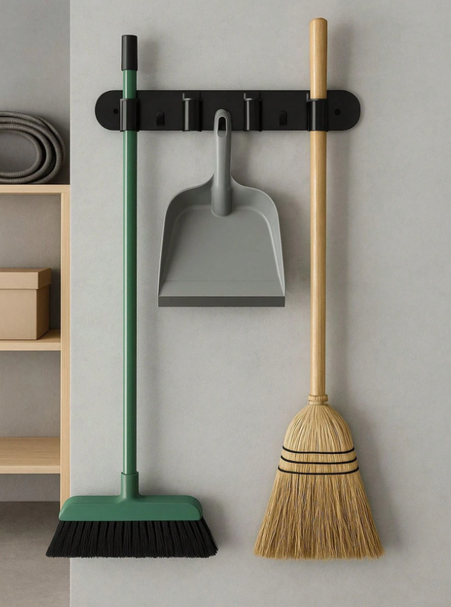 Suporte Organizador Multiuso 4 Lugares 2 Ganchos Porta Vassoura Rodo