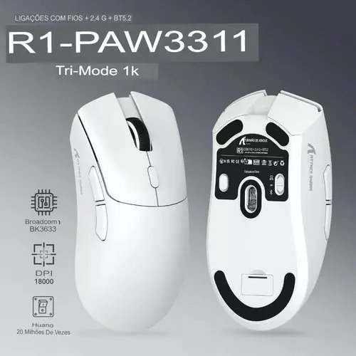 Mouse Branco Sem Fio Gamer Attack Shark R1 Paw3311 De 18000
