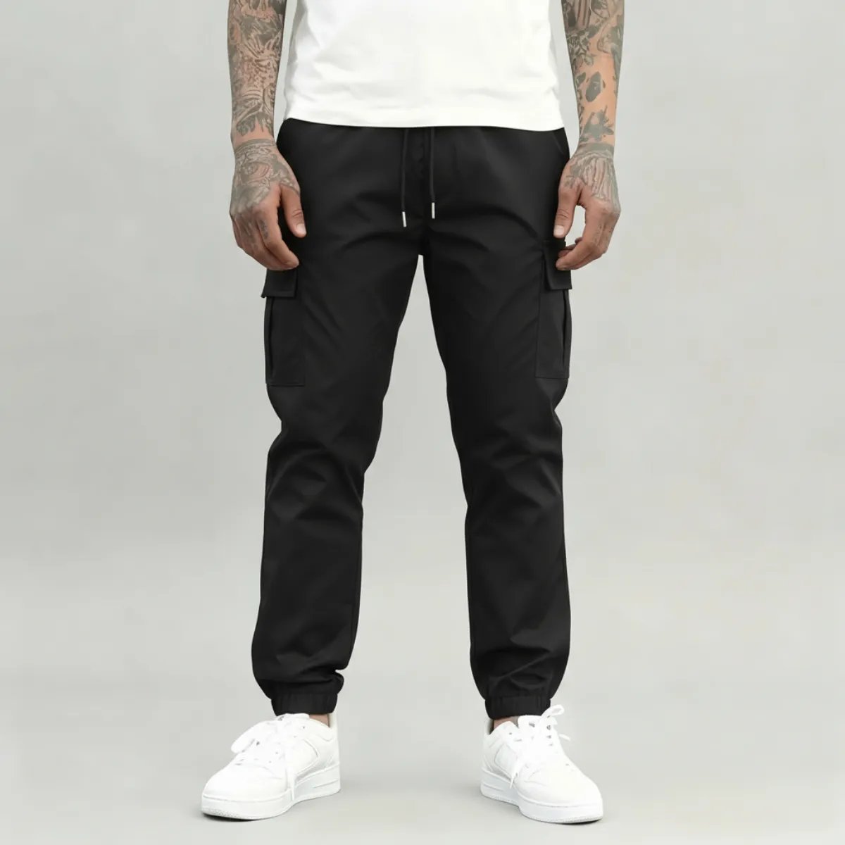 Calça Jogger Cargo Masculina Sarja Calca Streetwear Punho