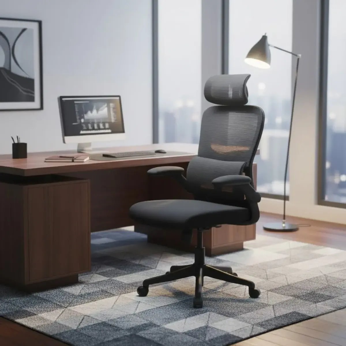 Cadeira Presidente Ergonômica Ajustável Tela Mesh Reclinável Preto Espuma