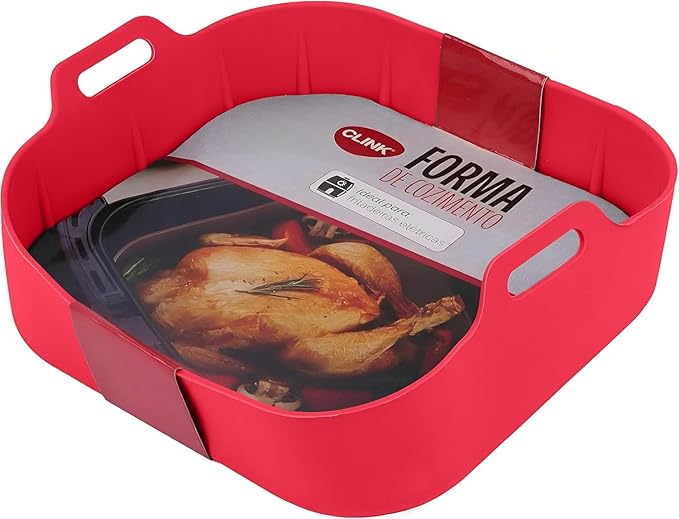 Panela de Silicone Quadrada Fritadeira Microondas C/Alça Forma 20x20cm Cesto para Air Fryer