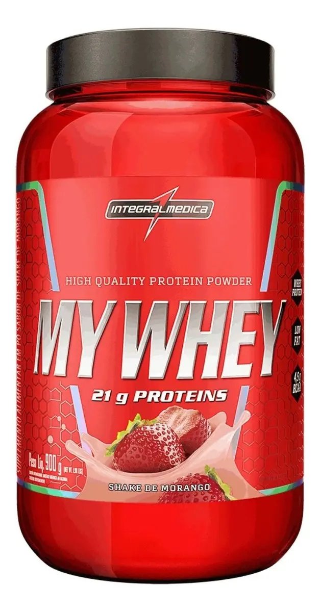 Integralmedica - Whey Protein Concentrado Morango 100% Pure - 21g de Proteína por Scoop, Suplementação Alimentar Pós-Treino, Fórmula Enriquecida com BCAAs - Pote 900g