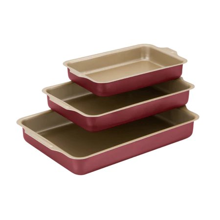 Jogo De Assadeiras Retangular Antiaderente 3 Peças Cereja Nacional