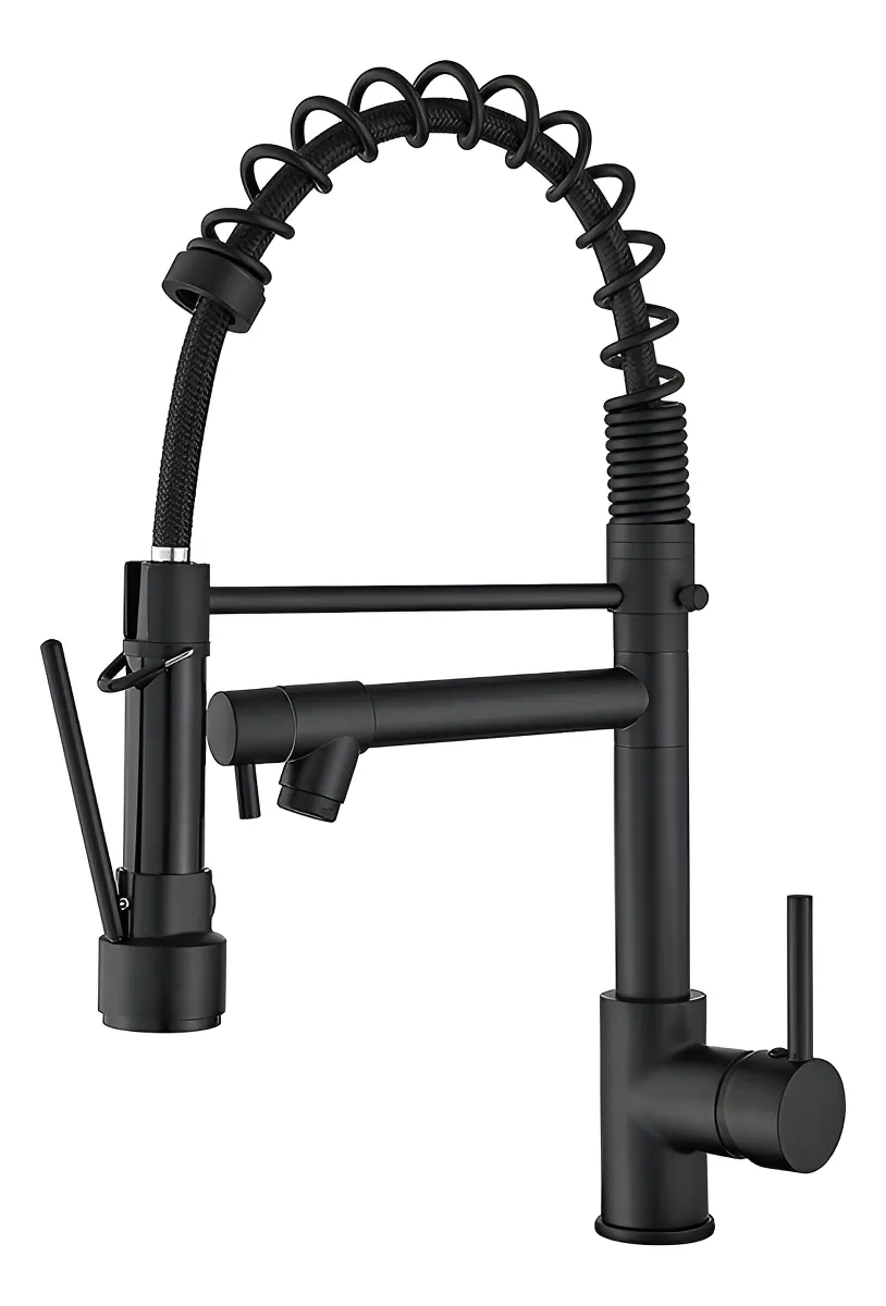 Torneira Gourmet de aço inoxidável bancada grande torneira de mola acabamento fosco cor preto