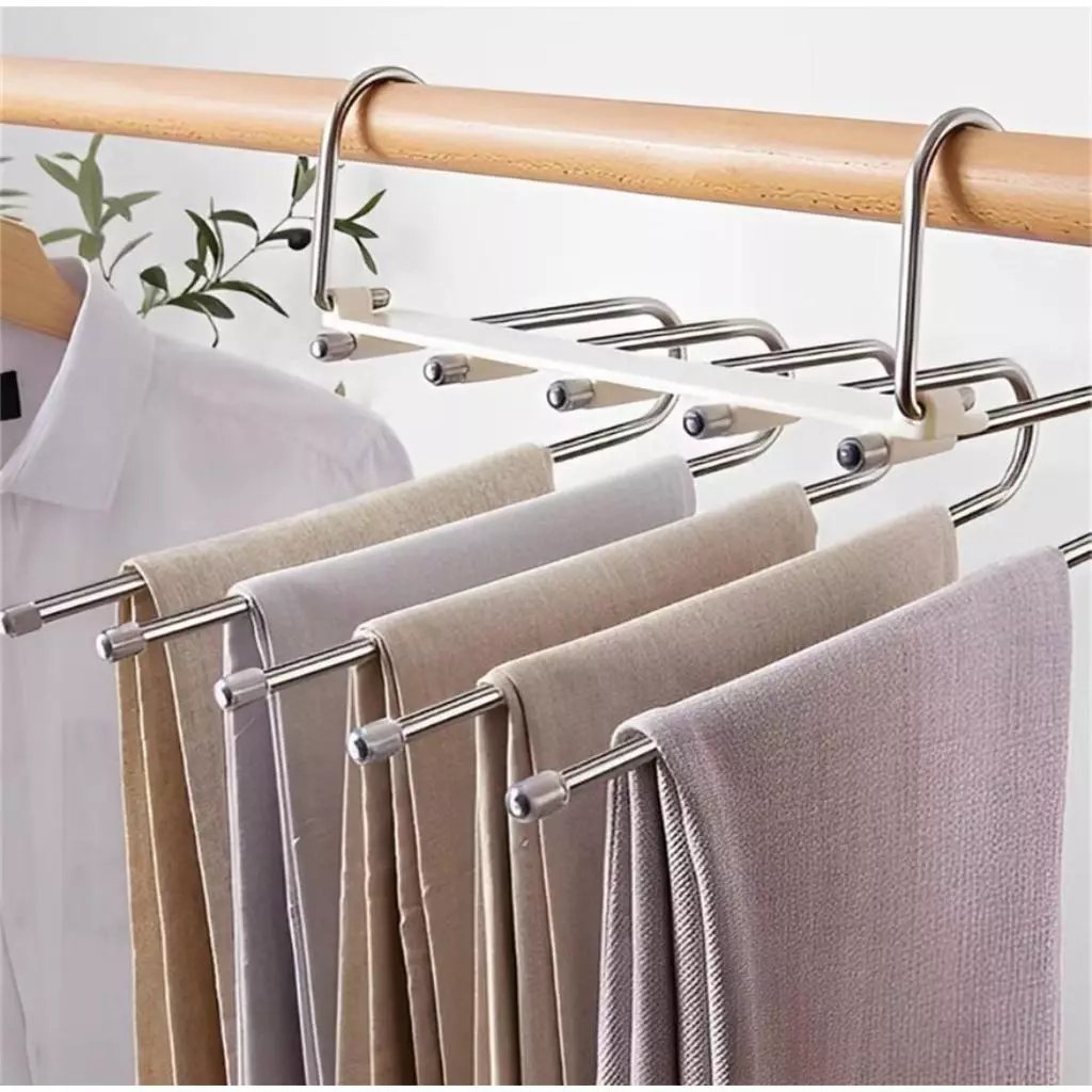 Kit Cabide Para Calça Organizador Aço Inox Multifuncional Retrátil 5 em 1