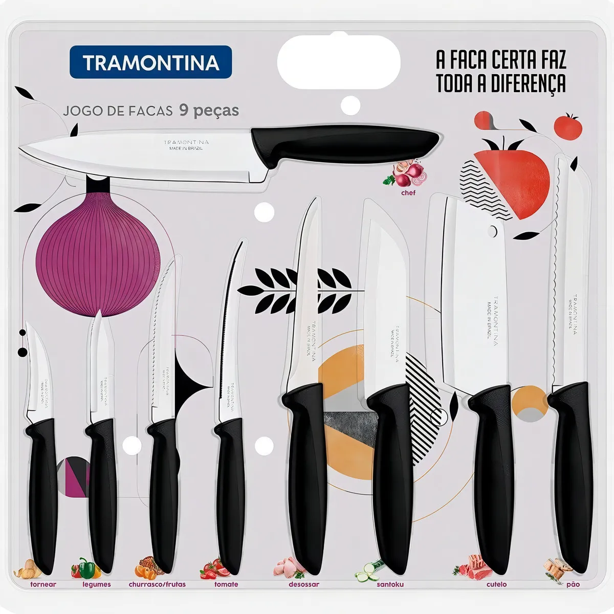Jogo De Facas Faqueiro 9 Peças Plenus Aço Inox Tramontina