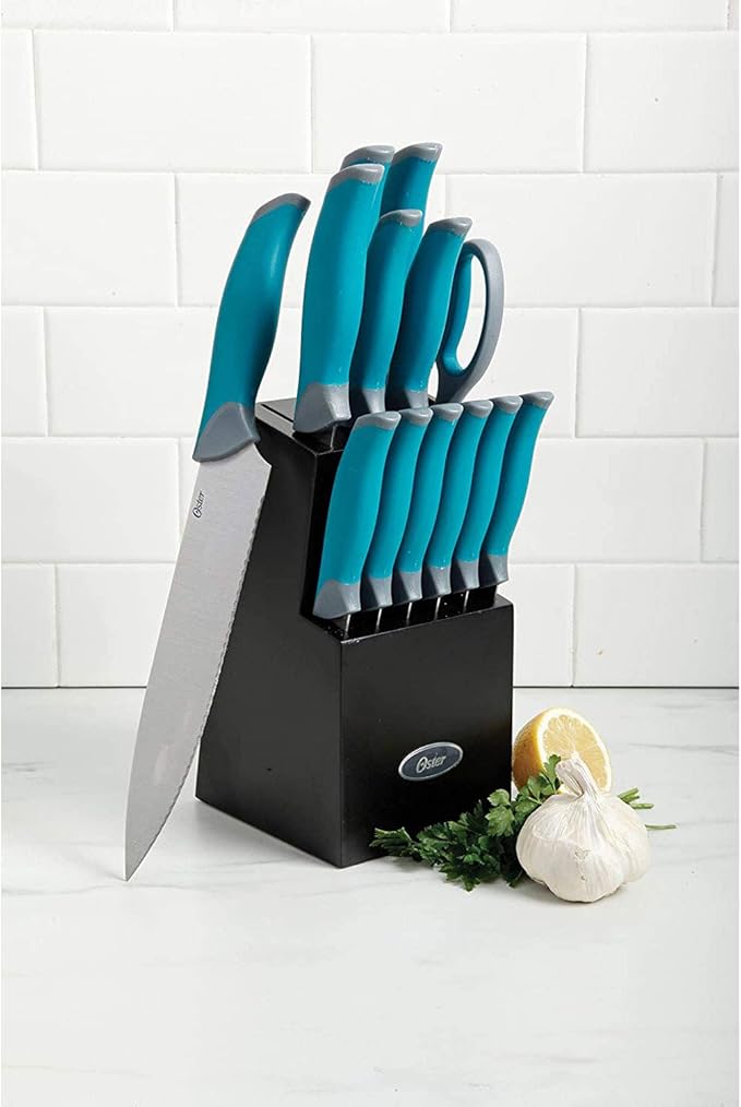 Oster Conjunto de facas Lindbergh, aço inoxidável, 14 peças, azul-petróleo e preto