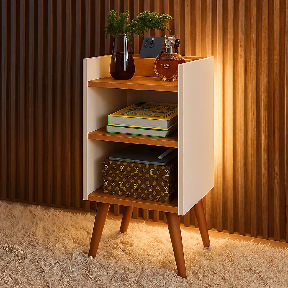 Bidê Mesa De Cabeceira Max Retrô Pés Pvc Anti Umidade Com Prateleira Nicho Organizador Cor Off-white/cinamomo Pés Marrom